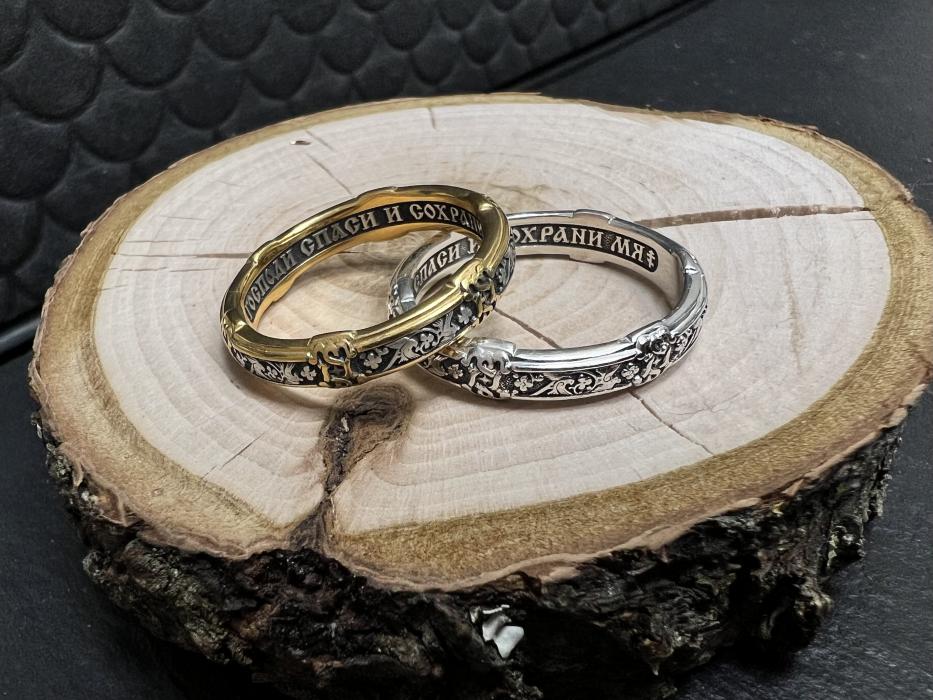 «Подобно Царство Небесное неводу…», — говорит Иисус Христос (Матф.13:47). Сеть с птицами — это образ Церкви, которая увлекает души праведных в райские сады Небесного Иерусалима. «Господи Спаси и Сохрани», — написано внутри кольца.