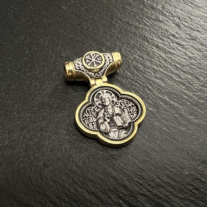 На образке помещен Иисус Христос, где Он представлен в образе Господа Вседержителя, то есть всемогущего Бога, держащего в руках Книгу Судеб всего человечества, на Евангелие могут быть написаны две буквы: альфа и омега – это указание на то, что Вседержитель является началом и концом всего. Этот образ занимает главенствующее место не только в храмах, но и в домашних иконостасах. Возносят молитвы перед образом люди, которые хотят получить благословение на будущие дела или же благодарят за помощь и поддержку. Поможет икона получить утешение и силы, избавиться от физических и духовных травм, а также от греховных помыслов. Возносить прошения можно не только за себя, но и за близких Вам людей. Образок можно подарить молодоженам