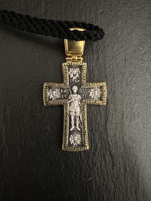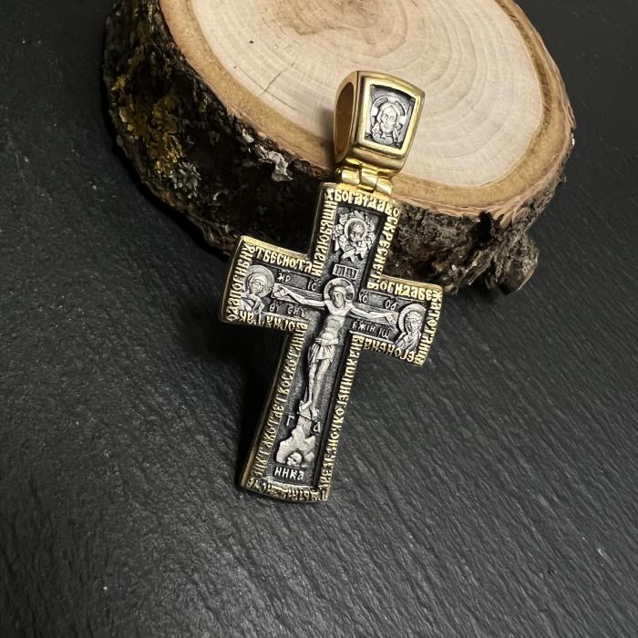 Серебряный крест— это идеальное сочетание традиционных ценностей и современного дизайна. На лицевой стороне креста традиционно расположено Распятие Иисуса Христа. Справа от Спасителя изображена Богородица, слева - Иоанн Богослов - один из Двенадцати Апостолов. На оборотной стороне крестика - Георгий Победоносец. По рамке подвески пущена молитва Честному Животворящему Кресту Господню: "Да воскреснет Бог". Этот стильный крест на шею станет символом веры и духовной защиты, который подчеркнёт индивидуальность вашего любимого человека. Независимо от того, покупаете ли вы подарок брату или папе, этот нательный крестик оправдает все ваши ожидания. Сделайте сюрприз мужу или любимому мужчине в знак заботы и любви. Нательный крест из серебра укомплектован фирменной подарочной упаковкой, что делает его готовым подарочным решением на любой праздник.