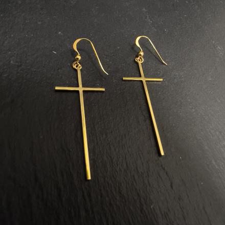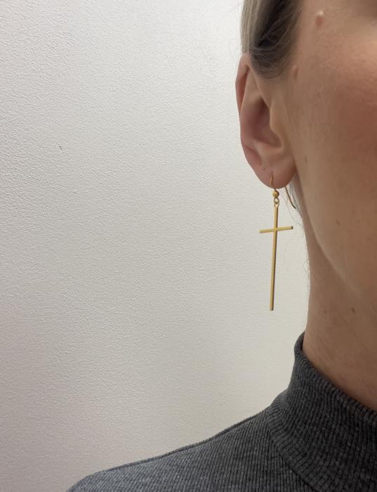 Серьги в виде крестика Размер: 50мм х 20мм Стильные серьги, в минималистичном стиле Weight: 2,33 грMetal: Silver 925° Артикул: 1535-63 Price: 49.00 €