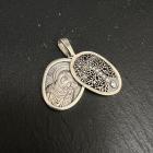 Позолоченное кольцо с эмалью, на котором нарисован красивый растительный орнамент. Этот орнамент также встречается на самой иконе. Внутренняя сторона кольца заполнена слова из молитвы, с которой верующие обращаются к Пресвятой Богородице «Умиление» - О Пресвятая Дево Богородице не лиши нас Матерняго заступления и помощи /О Пресвятая Дева Богородица не лиши нас Материнской защиты и помощи. Считается, что она помогает всем, кого настигли печаль и уныние.