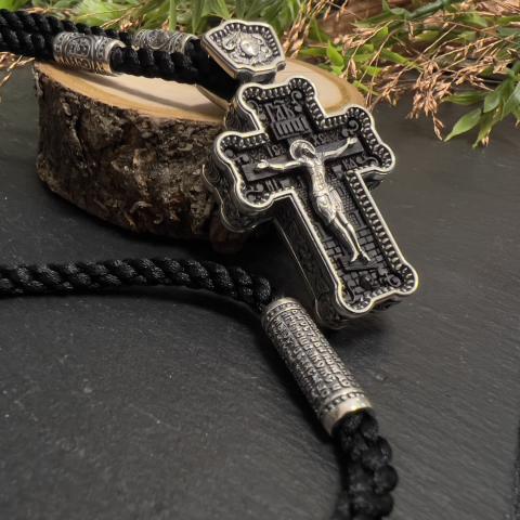 ПРАВОСЛАВНЫЙ НАТЕЛЬНЫЙ КРЕСТ ИЗ ДЕРЕВА, гайтан