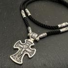 Вставки и оконцеватели с карабином изготовлены из серебра 925 пробы с чернением. На вставках изображена молитва "Псалом 90". На оконцевателях изображена молитва "Господи, помилуй мя грешнаго".