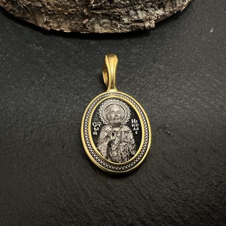 На лицевой стороне образка изображен святитель Николай Мирликийский, которого называют также Николаем Угодником и Чудотворцем за помощь во всех житейских обстоятельствах и духовных нуждах. Святой почитается как целитель болезней, покровитель путешествующих, особенно по морю, помощник в торговле, учебе, а также в поисках достойного супруга. На обороте образка написана молитва святителю: «Отче Николае, моли Христа Бога спастися душам нашим».